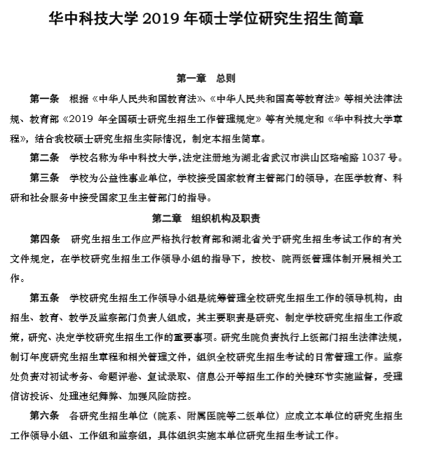 以上是聚创考研网为考生整理的"华中科技大学2019年硕士研究生招生简章"的相关考研信息,希望对大家考研备考有所帮助! 备考过程中如有疑问,也可以添加老师微信H17720740258进行咨询。