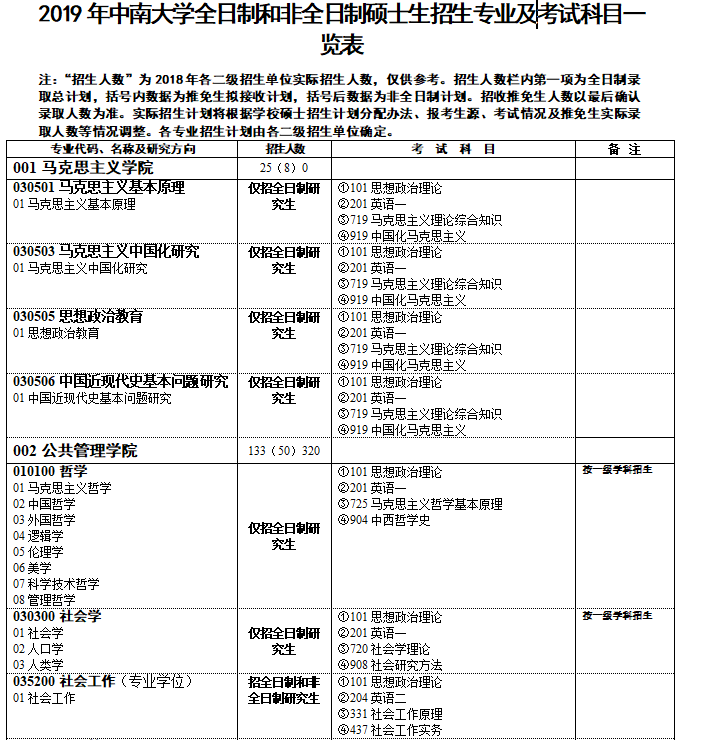 完整版请下载附件:2019年中南大学全日制和非全日制硕士生招生专业目录.docx