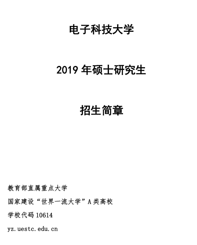 详细内容请下载附件:电子科技大学2019年硕士研究生招生简章.pdf