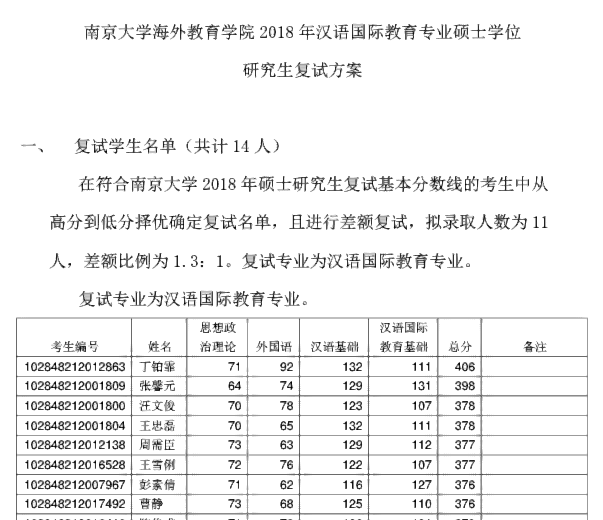 附件下载:南京大学海外教育学院2018年复试信息、复试名单.pdf