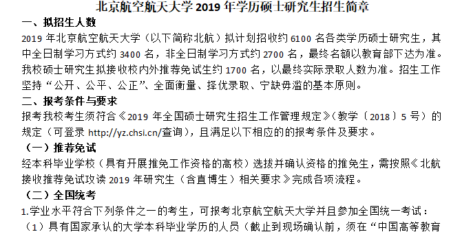 以上是聚创考研网为考生整理的"2019年北京航空航天大学硕士研究生招生简章"的相关考研信息,希望对大家考研备考有所帮助! 备考过程中如有疑问,也可以添加老师微信H17720740258进行咨询。