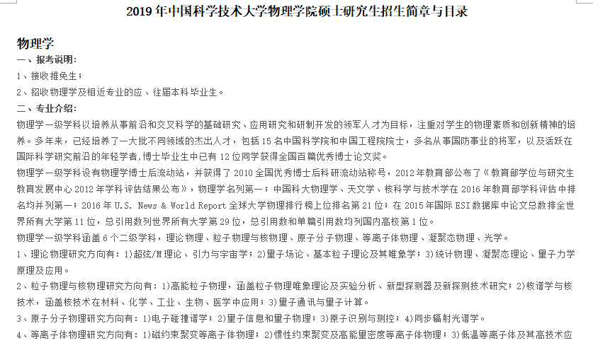 以上是聚创考研网为考生整理的"2019年中国科学技术大学物理学院硕士研究生招生简章与目录"的相关考研信息,希望对大家考研备考有所帮助! 备考过程中如有疑问,也可以添加老师微信H17720740258进行咨询。