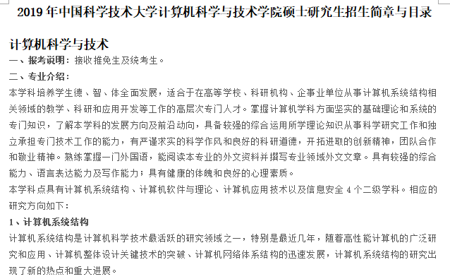 2019年中国科学技术大学计算机科学与技术学院硕士研究生招生简章与目录.doc