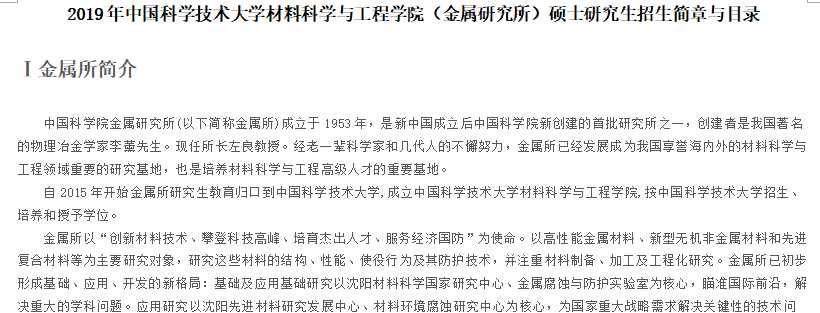 以上是聚创考研网为考生整理的"2019年中国科学技术大学材料科学与工程学院硕士研究生招生目录与简章"的相关考研信息,希望对大家考研备考有所帮助! 备考过程中如有疑问,也可以添加老师微信H17720740258进行咨询。