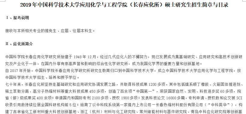 以上是聚创考研网为考生整理的"2019年中国科学技术大学应用化学与工程学院硕士研究生招生简章与目录"的相关考研信息,希望对大家考研备考有所帮助! 备考过程中如有疑问,也可以添加老师微信H17720740258进行咨询。