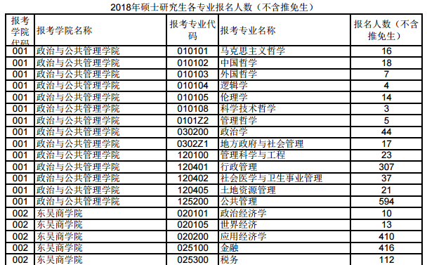 以上是聚创考研网为考生整理的"苏州大学2018年硕士研究生各专业报名人数(不含推免生)"的相关考研信息,希望对大家考研备考有所帮助! 备考过程中如有疑问,也可以添加老师微信H17720740258进行咨询。