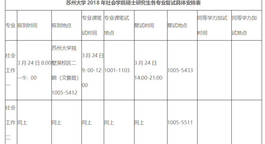 据悉,苏州大学2018年社会学院硕士研究生各专业复试具体安排表及复试名单公示已公布, 聚英苏州大学考研网小编为大家整理内容如下: