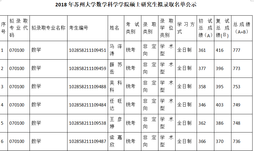 以上是聚创考研网为考生整理的"2018年苏州大学数学科学学院硕士研究生拟录取名单公示"的相关考研信息,希望对大家考研备考有所帮助! 备考过程中如有疑问,也可以添加老师微信H17720740258进行咨询。