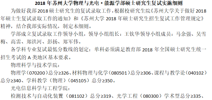据悉,2018年苏州大学物理与光电·能源学部硕士研究生复试实施细则已经公布,聚英苏州大学考研网为您整理如下: