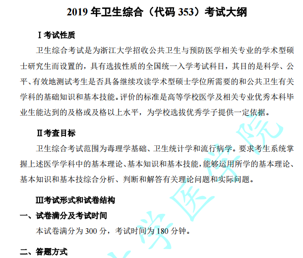 据悉,浙江大学医学院2019年卫生综合考试大纲已公布,聚英浙江大学考研网小编为你整理如下内容: