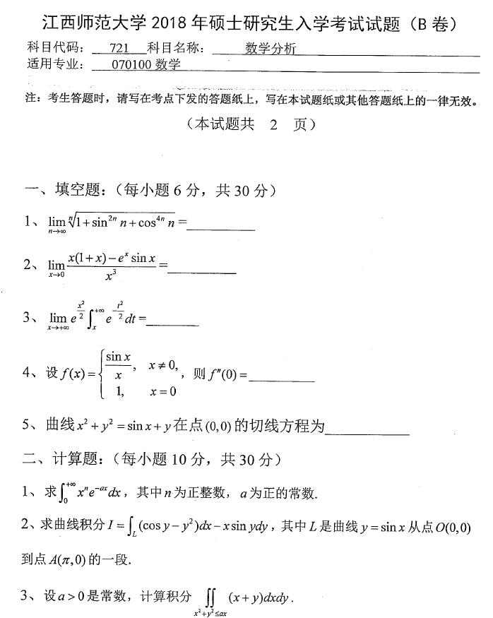 据悉,2018年江西师范大学721数学分析硕士研究生考试真题已公布,聚英江西师范大学考研网小编为你整理如下内容: