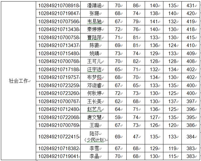 要求:从进入复试的社会工作全日制考生中进行调剂;