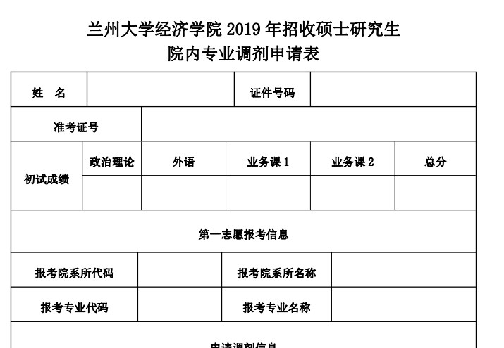 附件:兰州大学经济学院2019年招收硕士研究生院内专业调剂申请表