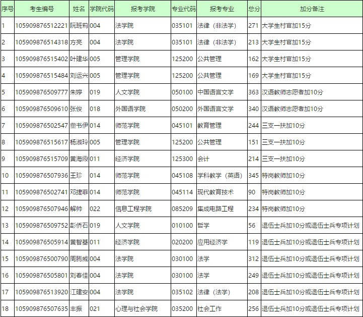 以上是聚创考研网为考生整理的"深圳大学2019年硕士生招生考试政策加分考生名单"的相关考研信息,希望对大家考研备考有所帮助! 备考过程中如有疑问,也可以添加老师微信H17720740258进行咨询。