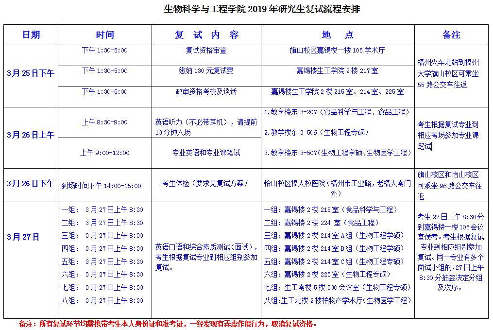 据悉,福州大学生物科学与工程学院2019年硕士研究生招生复试方案、详细流程安排、分专业招生计划已公布,聚英福州大学考研网小编为你整理如下内容: