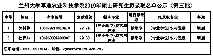 附件:兰州大学草地农业科技学院2019年硕士研究生拟录取名单公示(第二批)