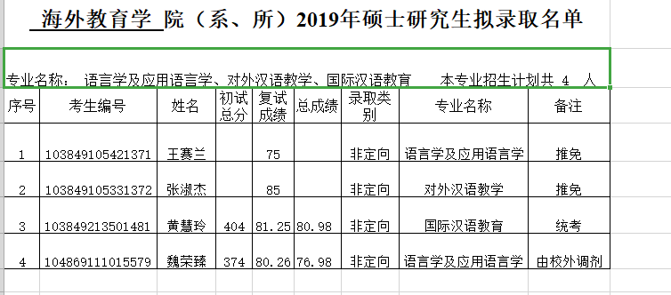 我院2019年硕士研究生拟录取名单在附件,最终录取名单以教育部审核通过的名单为准。