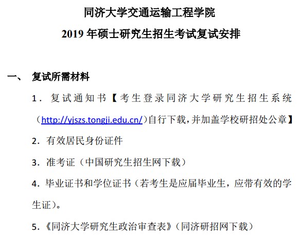 附件:同济大学交通运输工程学院2019年硕士研究生招生考试复试安排