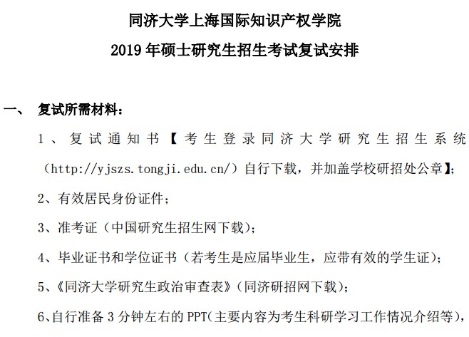 附件:同济大学上海国际知识产权学院2019年硕士研究生招生考试复试安排