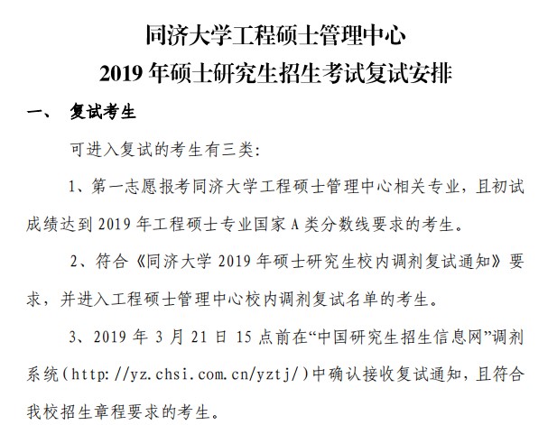 据悉,同济大学工程硕士管理中心2019年硕士研究生招生考试复试安排已公布,聚创同济大学考研网小编为大家整理了相关信息,具体内容如下:
