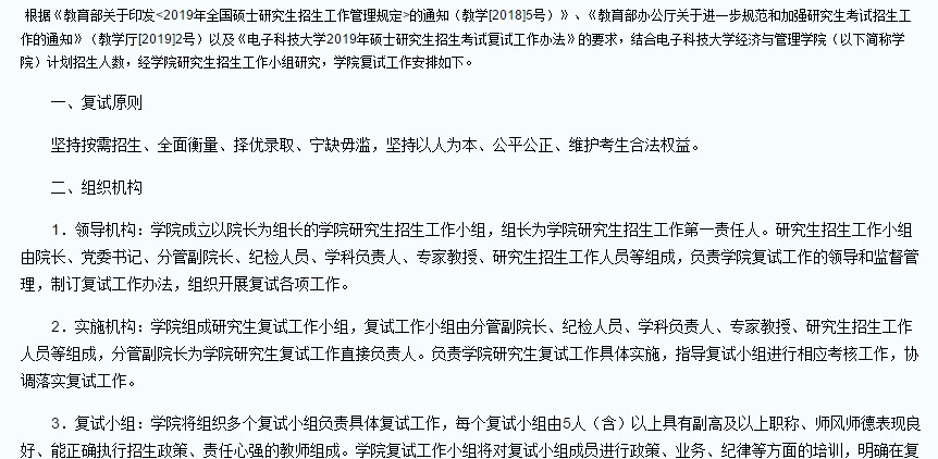 附件:2019年电子科技大学经济与管理学院硕士研究生招生考试复试工作安排