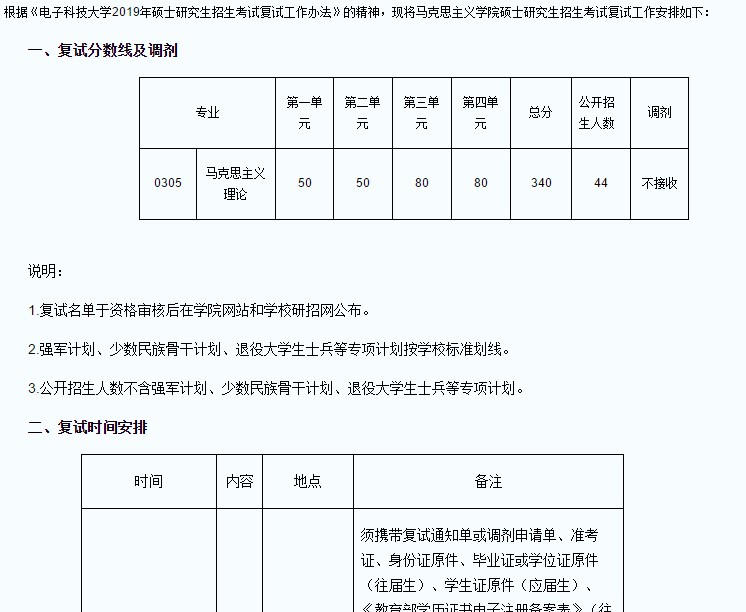 附件:2019年电子科技大学马克思主义学院硕士研究生招生考试复试工作安排