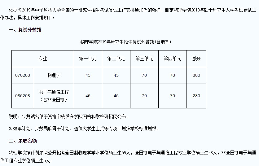 附件:2019年电子科技大学物理学院硕士研究生招生考试复试工作安排