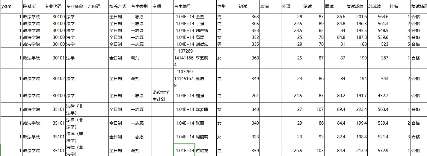 江西师范大学政法学院2019年硕士生复试结果汇总表公示