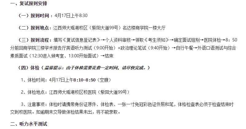 据悉,江西师范大学商学院研招公告29号2019年MBA研究生第五批调剂复试考生须知已公布,聚创江西师大考研网为您整理如下: