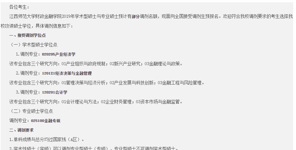 据悉,江西师范大学财政金融学院2019年研究生调剂预报名公告已公布,聚创江西师大考研网为您整理如下:
