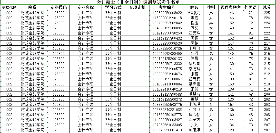 附件:2019年江西师范大学财政金融学院会计专硕(非全日制)调剂学生复试名单公示