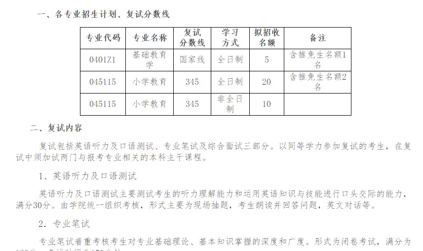 江西师范大学初等教育学院2019年研究生复试录取办法