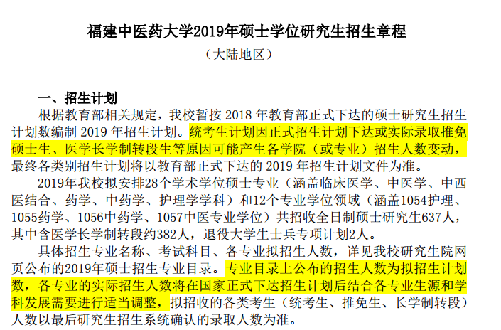 完整版内容请查看附件:2019年硕士招生公告1-福建中医药大学2019年硕士学位研究生招生章程(完整版).pdf