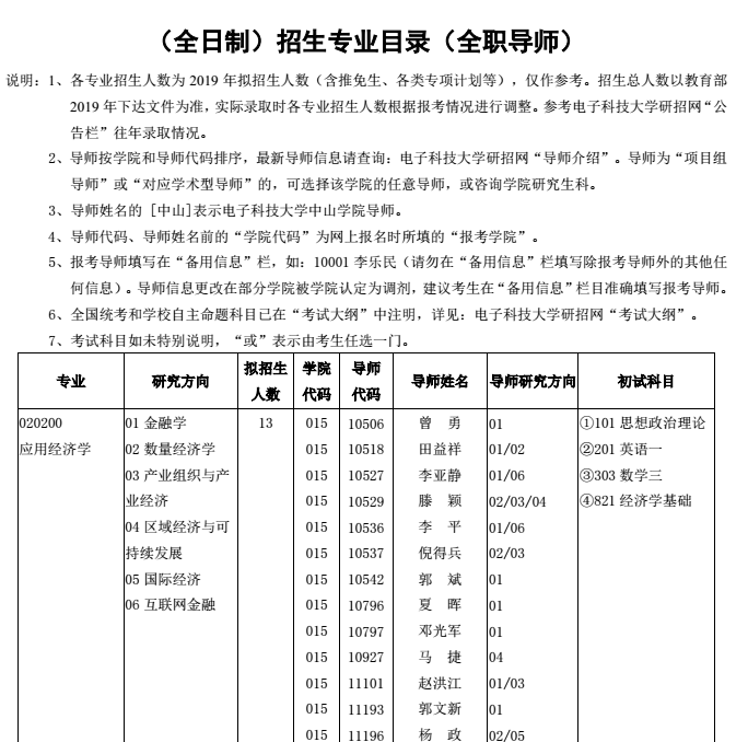 附件:电子科技大学2020年硕士研究生招生简章 (招生简章内包括专业目录)