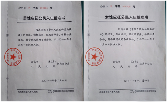 3、报考“退役大学生士兵专项计划”的考生,除上传“通用材料”、“考点特殊材料”外,还须上传本人《入伍批准书》和《退出现役证》原件照片。样图如下: