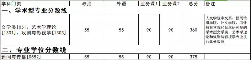 除【055200】新闻与传播(专业学位)参考专硕分数线以外,其他的专业参考文学类学硕分数线