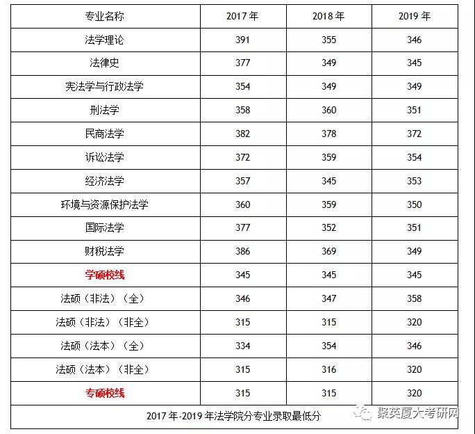 4)如果对专业本身没有要求,只想考一所名校,部分学硕专业,如法律史,是不错的选择,数据显示法律史近年的录取最低分仅略高于厦大校线、连续三年招生4人且不收推免。