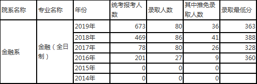 对比两个院系的报录比可以看出,金融系的报考人数去年达到了673人,但录取人数只有80人,报录比为15.2,而王亚南19年报考人数是136人,录取有36人报录比为8.5