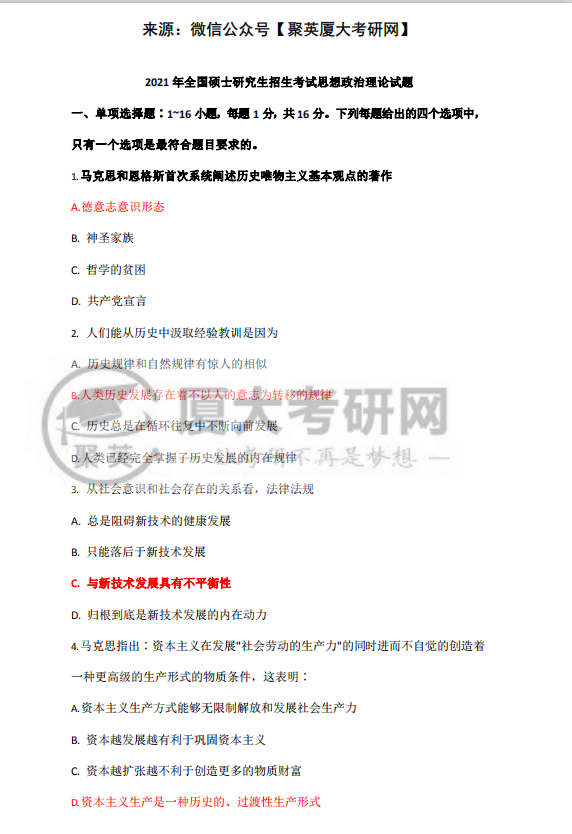 以上是聚创考研网为考生整理的"2021考研政治真题及答案解析"的相关考研信息,希望对大家考研备考有所帮助! 备考过程中如有疑问,也可以添加老师微信H17720740258进行咨询。